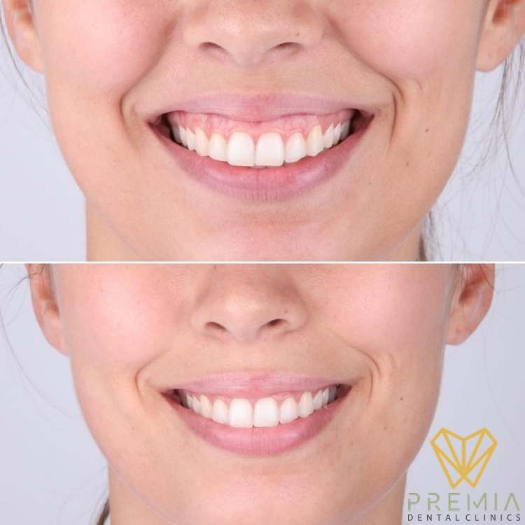 لكن بعد علاج الابتسامة اللثوية يمكن ملاحظة ما يلي: