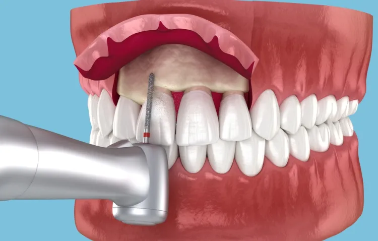 تتضمن هذه العملية إزالة الأنسجة اللثوية الزائدة لتظهر الأسنان بشكل أكبر. يتم ذلك عن طريق إزالة جزء من اللثة وأحيانًا العظام المحيطة بها، مما يجعل الأسنان تبدو أطول وأكثر تناسقًا.